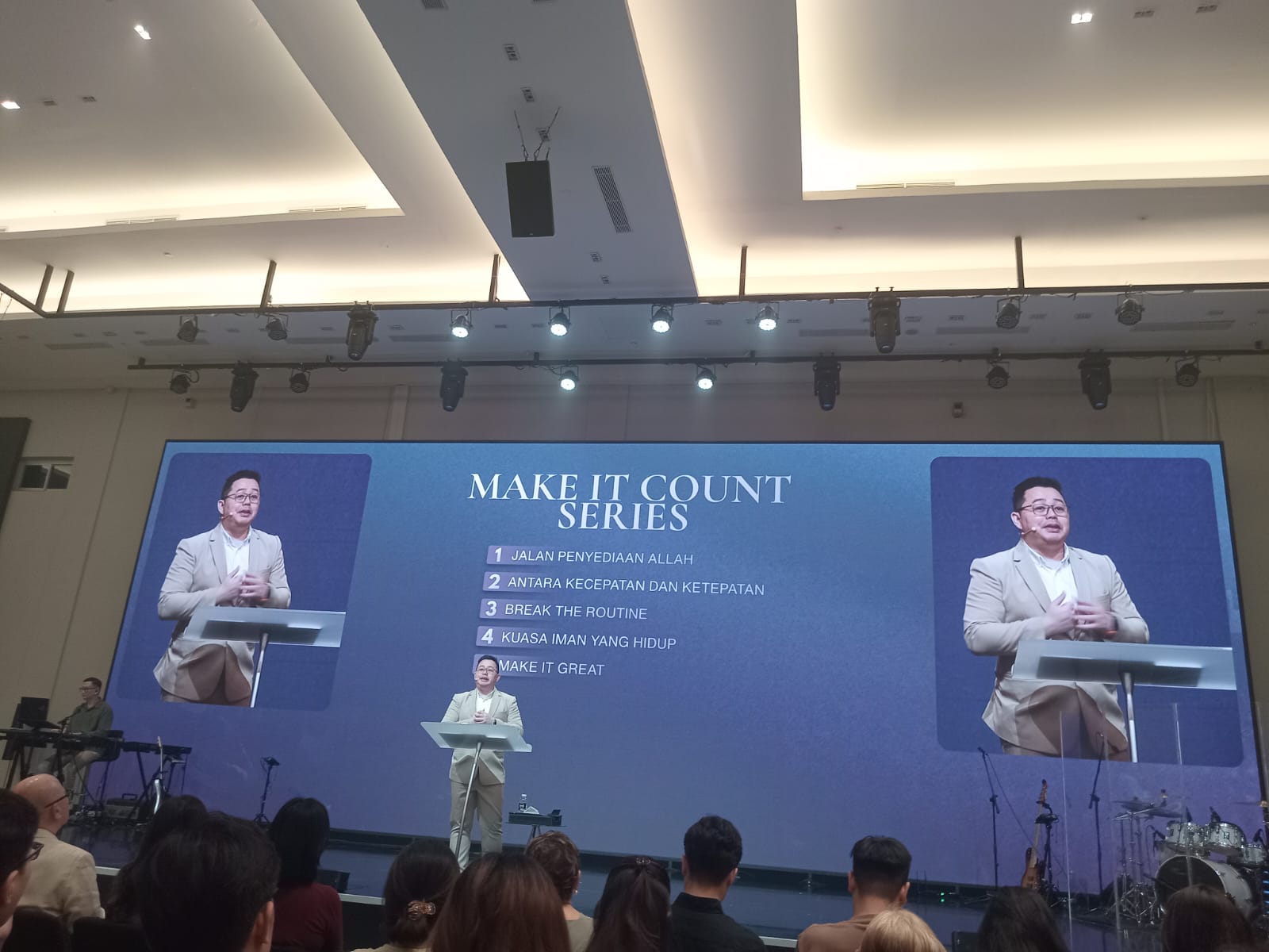 Arief Wicaksono membawakan Firman Tuhan dalam lima sesi ibadah. Masing-masing bertopik ‘Jalan Penyediaan Allah’, ’Antara Kecepatan dan Ketepatan’, ’Break The Routine’, ‘Kuasa Iman yang Hidup’ dan ‘Make It Great’.