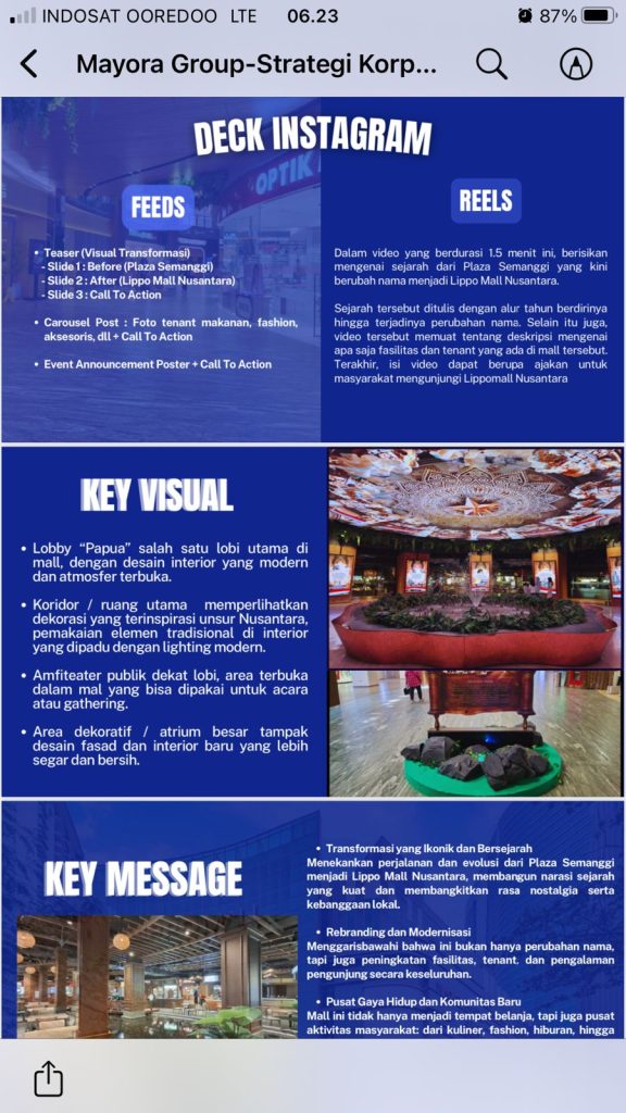 Pertemuan hari ini dan berikutnya: bikin konsep dalam deck, lalu nanti konkretkan strategi komunikasinya… kenapa Plaza Semanggi yang kini rebranding nama dan berubah tampilan jadi tempat nongkrong super keren Lippo Mal Nusantara kok masih relatif sepi?