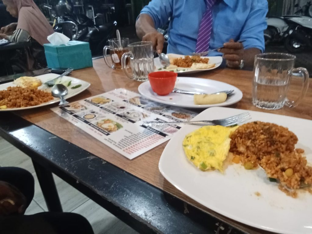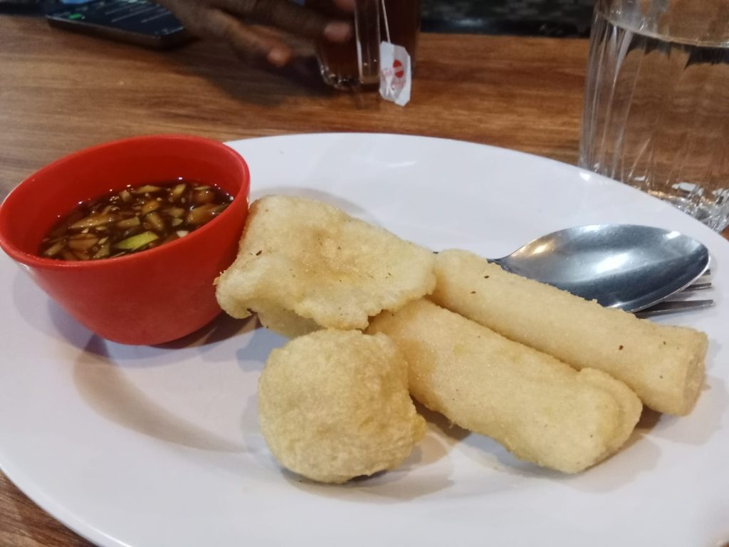 Selain memesan tiga nasi goreng telur, bersama Imran dan Muchsin kami pun mengorder Empek-empek, atau Pempek, makanan khas Sumsel.