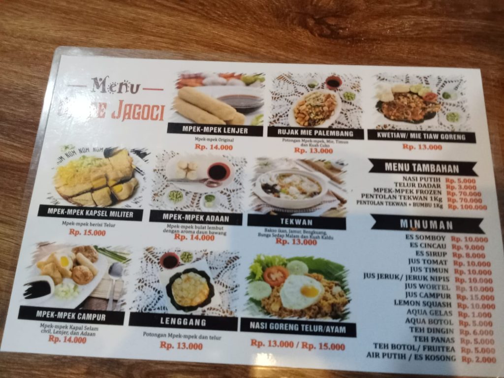 Harga Pempek di Jagoci sangat terjangkau, mulai Rp 12 ribu – 25 ribu per porsi. ”Tersedia juga makanan dan berbagai jenis minuman lainnya,” sebut Bang Agi, sapaan akrabnya.