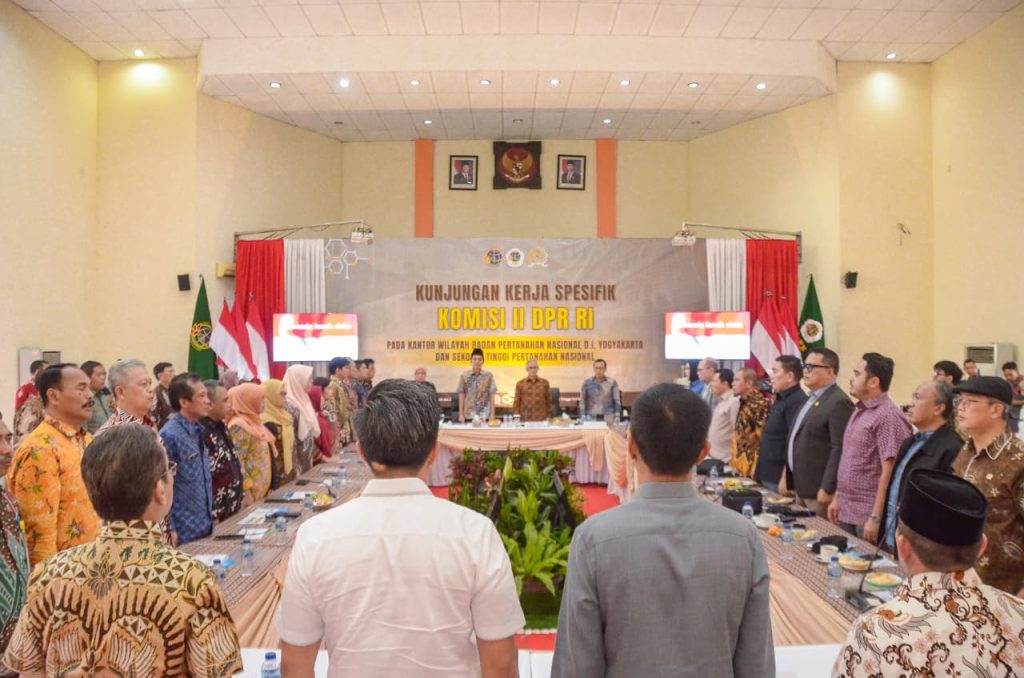 Tim Kunres Komisi II DPR RI diterima Kepala Kantor Wilayah BPN Provinsi DIY Sepyo Achanto, dan Staf Ahli Bidang Teknologi Informasi Kementerian ATR/BPN Dwi Budi Martono.