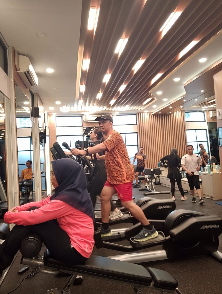 Hari ini, selain treadmill dan menggunakan sepeda statis atau spinning bike, juga mendapat pengukuran kondisi badan. Bersama Pelatih Kebugaran alias Personal Trainer Tari, ternyata masih harus lebih banyak ‘memperbaiki diri’.
