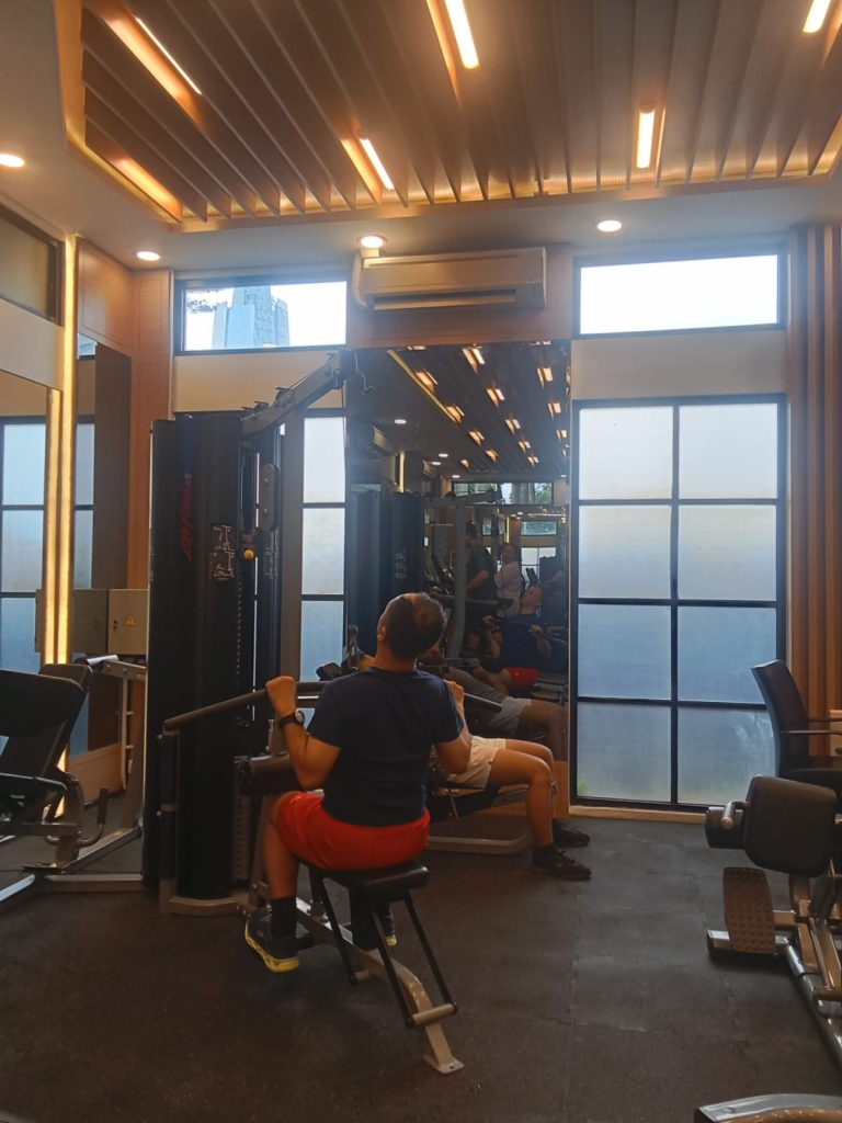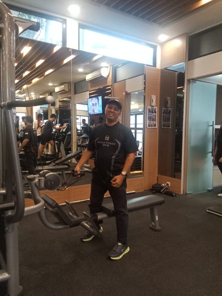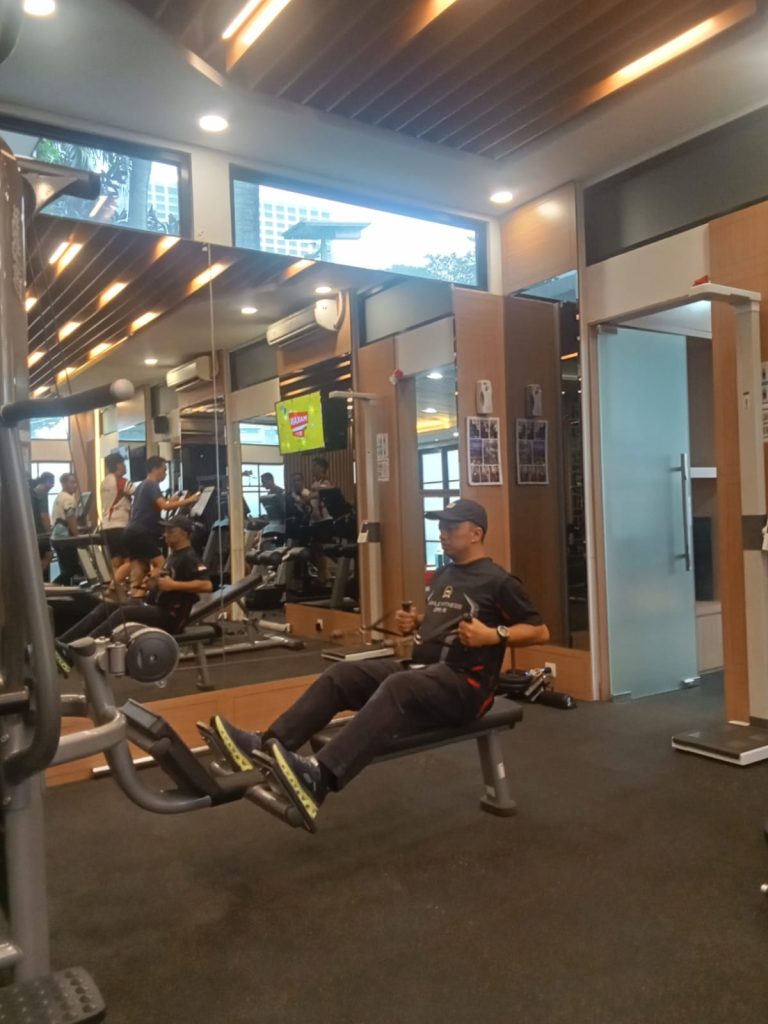 Menginap di hotel beberapa kota, sempat memanfaatkan fasilitas fitness. Meski ya baru sebatas treadmill. Di Hotel Pangeran Pekanbaru dan Swiss-Belboutique Yogyakarta, misalnya.