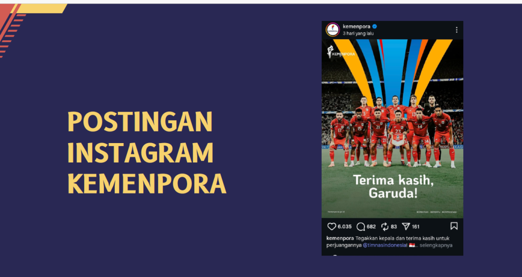 Sayangnya, post positif itu hanya di-‘collabs’ dengan akun @timnasindonesia, tapi tidak sekalian bergabung ke akun @pssi dan @kemenpora.