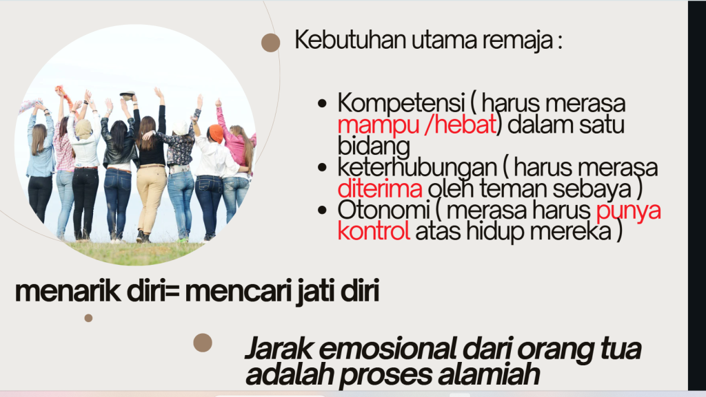 Pada sesi ini, Coach Noto mengajak orangtua memahami kebutuhan remaja, memiliki alat praktis u tuk komunikasi tanpa drama dan menggeser peran otoriter menjadi otoritatif (lebih dekat dan hangat).