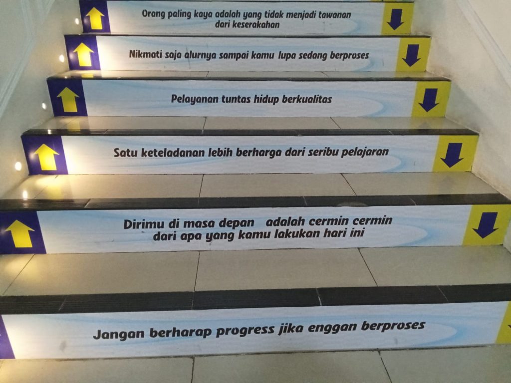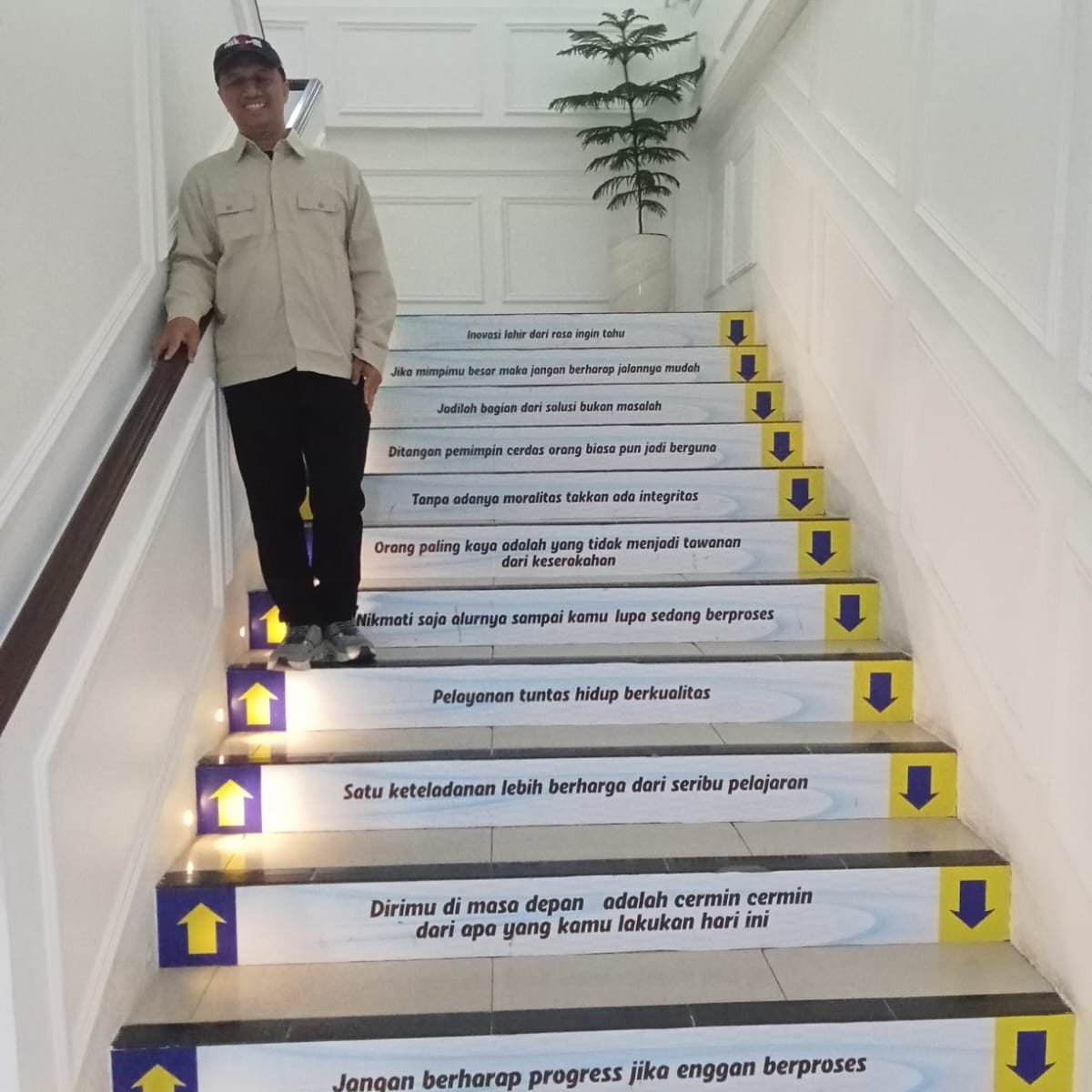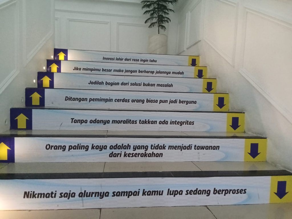 Seperti kala bertamu ke Kantor Gubernur Sulawesi Selatan, nampak tangga-tangga di Kantor Tanah Depok dihiasi berbagai tulisan pembakar semangat.