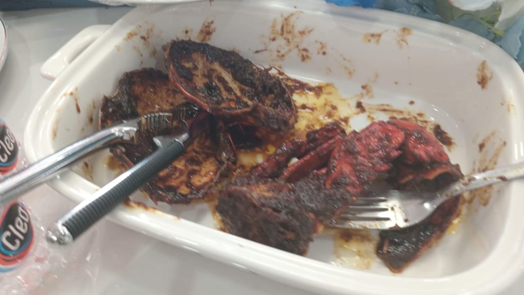 Jauh lebih berminat menguliti kepiting dengan tang yang disediakan di meja. Atau makan jajanan ala Barongko Makassar. Kue lembut berbahan dasar pisang kepok yang dihaluskan, telur, santan, dan gula, lalu dibungkus daun pisang berbentuk trapesium dan dikukus.