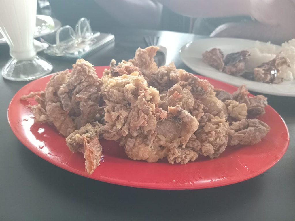 Di sini saya mengenal apa itu ’kepiting soka’. Kecil-kecil, terhidang di meja. Kepiting soka yakni kepiting bakau yang dipanen saat fase ganti kulit (molting), sehingga seluruh bagian tubuhnya, termasuk cangkang, bertekstur lunak dan dapat dimakan. Populer sebagai hidangan seafood renyah, kepiting ini kaya protein, nutrisi, dan memiliki rasa gurih khas tanpa repot mengupas.