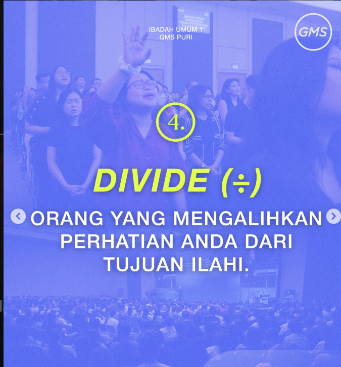 Keempat, Divide (÷) Pembagi. Orang seperti ini akan mengalihkan perhatian Anda dari tujuan ilahi.