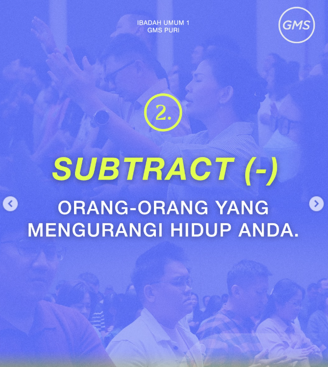 Kedua, Subtract. (-) Ada orang-orang yang mengurangi hidup Anda. Menghabiskan energi dan menguras damai sejahtera Anda.