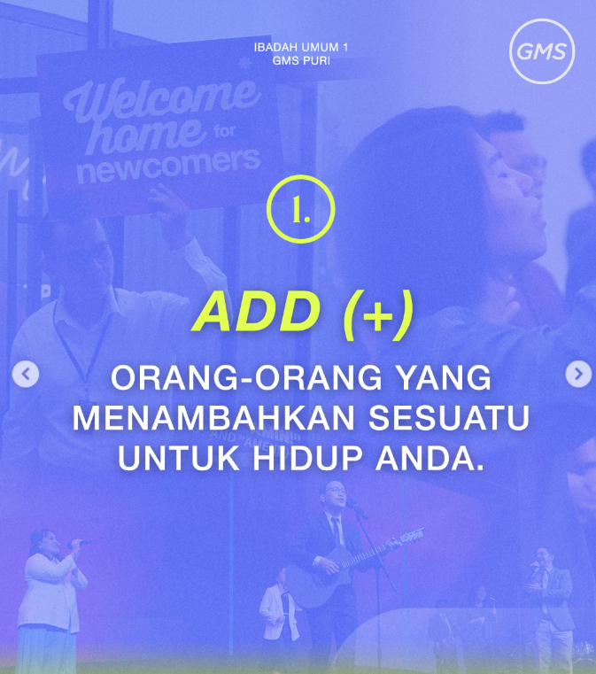 Pertama, Add. (+). Ada orang-orang yang menambahkan sesuatu dalam hidup Anda, misalnya iman, harapan, kebenaran.
