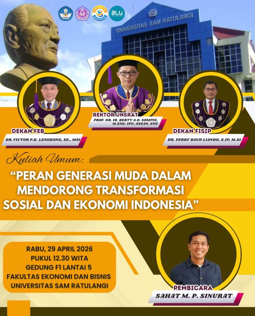 Ketua Umum Dewan Pimpinan Pusat Gerakan Angkatan Muda Kristen Indonesia (DPP GAMKI) Sahat Martin Philip Sinurat menegaskan pesan itu saat menjadi narasumber kuliah tamu bertopik ‘Peran Generasi Muda dalam Mendorong Transformasi Sosial dan Ekonomi Indonesia’ di Universitas Sam Ratulangi, Manado, Rabu, 29 April 2026.